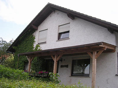 Familie Blanc in Hommershausen wunderte sich viele Jahre über den Fledermauskot vor ihrer Haustür. Im Giebel unter dem Streichbalken haben rund 60 Zwergfledermäuse ihr Quartier bezogen und fliegen dort jeden Abend aus. Die naturbegeisterte Familie ist stolz auf ihre heimlichen Untermieter.