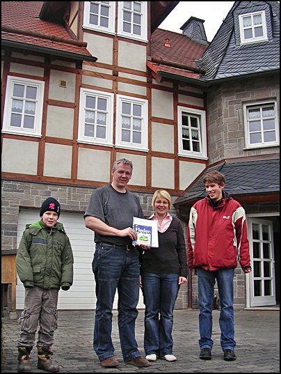 Naturschutzjugend (NAJU) übergaben die Auszeichnung.In Allendorf-Haine freute sich Familie Geisert über die Auszeichnung mit der Plakette und Urkunde ihres fledermausfreundlichen Hauses.