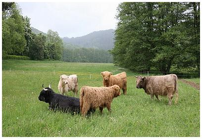 Extensive Beweidung durch genügsame Rinderrasse aus dem schottischen Hochland