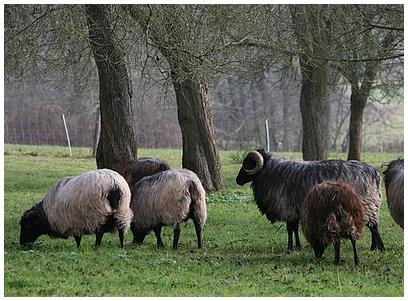 Als Rinderrasse für die Beweidung wurde das Schottische Hochlandrind ausgewählt. Diese Rasse zeichnet sich durch Robustheit, Langlebigkeit, Gutmütigkeit, aber auch Wehrhaftigkeit bei guten Mutterkuheigenschaften aus. Hohe Niederschläge und Stürme bei wenig ergibigen Weiden im Sommer und sehr nasse und harte Winter ohne besondere Zufütterung und Stall, waren die extremen Lebensbedingungen im schottischen Hochland unter denen diese Tiere als Mehrnutzungsrinder seit über 200 Jahren in Reinzucht gezogen wurden. Informationen zu den einzelnen Rindern finden Sie auf der Website von Gut Reckenberg: http://www.gut-reckenberg.de/Als Schafsrasse wurde die graue gehörnte Heidschnucke ausgewählt. Diese Rasse gehört zu den ältesten Schafsrassen Europas. Auch diese Rasse zeichnet sich durch besondere Robustheit und Anspruchslosigkeit aus. Beide Geschlechter tragen Hörner. Die Lämmer werden schwarz geboren und färben sich erst nach ca. 2 Jahren zu ihrem normalen Aussehen aus. Die Tiere leben ganzjährig im Freien und weiden wie auch unsere Rinder ausschließlich auf ökologisch bewirtschafteten Weiden. Eine eventuell notwendige Zufütterung im Winter erfolgt nur mit Heu, welches auch von diesen Weiden gewonnen wurde. Das Fleisch dieser langsam wachsenden Rasse ist eine Delikatesse und auch für die Diätkost geeignet.