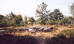 Herkunft / Eigenschaften der Skudden: Das Projekt fußt auf einer mittlerweile 44 Kopf starken Skuddenherde. Die Skudde war bis zum Anfang des letzten Jahrhunderts in Ostpreußen und dem Baltikum beheimatet. Sie gilt in ihrem Ursprungsland seit 1945 als ausgestorben und wird in Deutschland auf der Roten Liste der gefährdeten Nutztierrassen in der Kategorie III als gefährdet geführt. Das liegt zum einen an ihrer rauhen Mischwolle, die nicht mehr den heutigen Ansprüchen der Textilindustrie entspricht, für den Allwetterschutz der Tiere aber hervorragend geeignet ist. Zum anderen sind die Tiere sehr leicht: Starke Skuddenböcke wiegen nicht mehr als 50 kg und damit z.T. gerade ein Drittel herkömmlicher Fleischschafrassen, Muttertiere noch deutlich weniger.