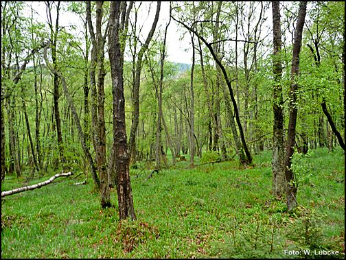 Zwischen Bereichen mit Fichtenaufforstungen haben sich nur noch Reste des einstigen farn- und bärlappreichen Buchenhochwaldes erhalten.