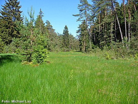 Kurzübersicht PflanzenweltAls Arten mit europäischem Schutzstatus kommen vier seltene Torfmoosarten vor (u.a. Sphagnum magellanicum), sowie Sprossender und Keulen-Bärlapp (Lycopodium annotinum, L clavatum), Sonnentau (Drosera rotundifolia), Wald-Lausekraut (Pedicularis sylvatica), Schmalblättriges Wollgras (Eriophorum angustifolium), Scheidiges Wollgras (E. vaginatum), Preiselbeere (Vaccinium vitis-idaea) und die überregional seltene atlantische Glocken-Heide (Erica tetralix).