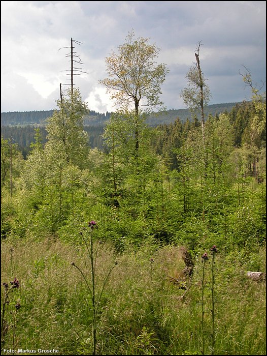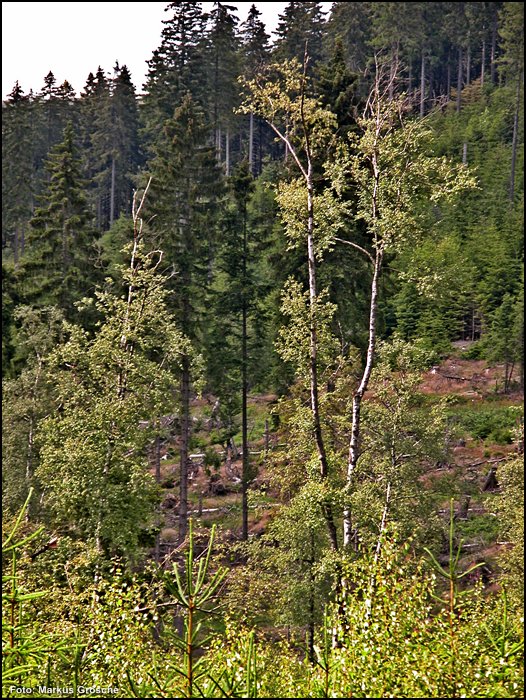 führte in jüngerer Zeit die Entnahme von Altfichten an den Rändern des Moorgebietes zu einer großflächigen Verjüngung der Birken.