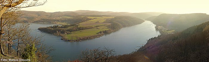Blick vom Naturschutzgebiet "Kahle Haardt" über den Edersee in Richtung Nationalpark