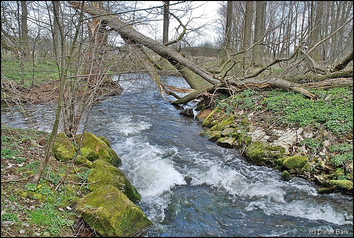 länger überflutete Stellen: Schlammflur-Gesellschaften mit Dreiteiligem Zweizahn (Bidens tripartita), Teich-Wasserstern (Callitriche stagnalis), Ästigem Igelkolben (Sparganium erectum) und Gift-Hahnenfuß (Ranunculus sceleratus, Schlammpionier).