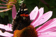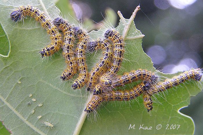Die Mondvogelraupen auf ihrem Schlafplatz | Tagpfauenauge auf Atalantblüte | Die Besetzung des Eichenbäumchens | Der Admiral besetzt den Sonnenhut |