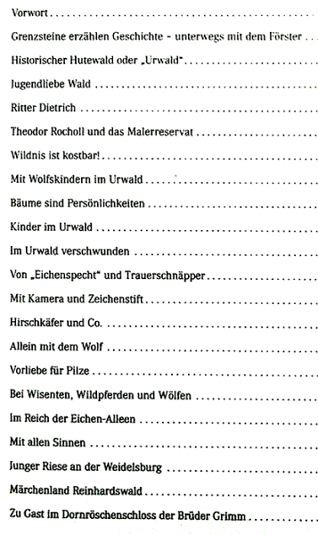 Mit Wolfgang Lübcke konnte ein profunder Kenner der heimischen Natur- und Kulturgeschichte als Textautor gewonnen werden. Er lässt Förster und Ökologen, Künstler und Kinder, Naturfotografen und ehrenamtliche Naturführer, Pilzkundler und Vogelkundler über ihr ganz persönliches Verhältnis zu diesem geheimnisvollen Wald berichten. In 21 Kapiteln (siehe Inhaltsverzeichnis) spannt er den Bogen von der Vorgeschichte des Waldstücks über die Naturschätze in Flora und Fauna, ihre Kenner und ihre künstlerische Rezeption bis hin zum "Dornröschenschloss der Gebrüder Grimm", welches über allem thront.